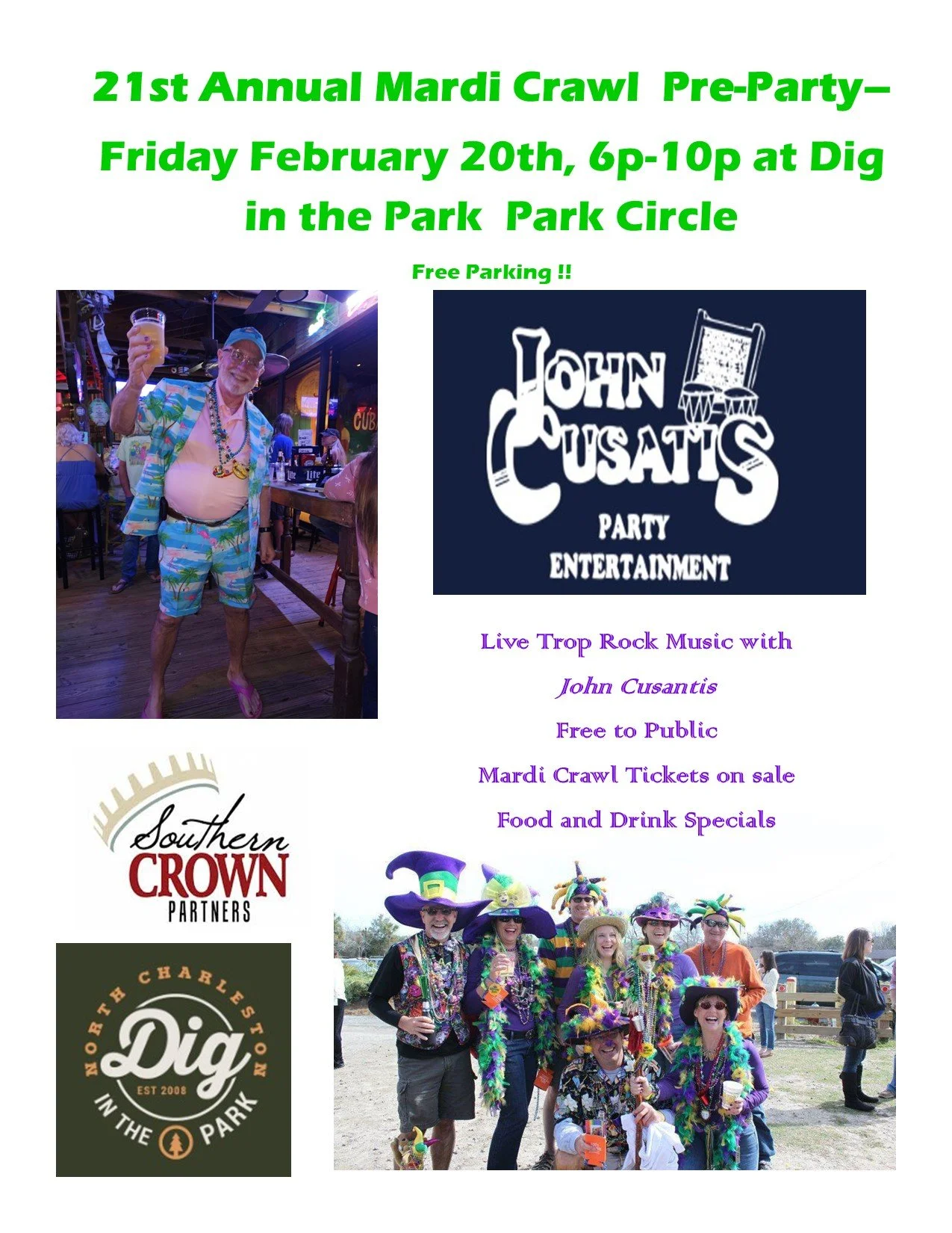 21ST ANNUAL MARDI CRAWL AT PARK CIRCLE—GO TO OUR MARDI CRAWL 2026 PAGE TO REGISTER !!!!!